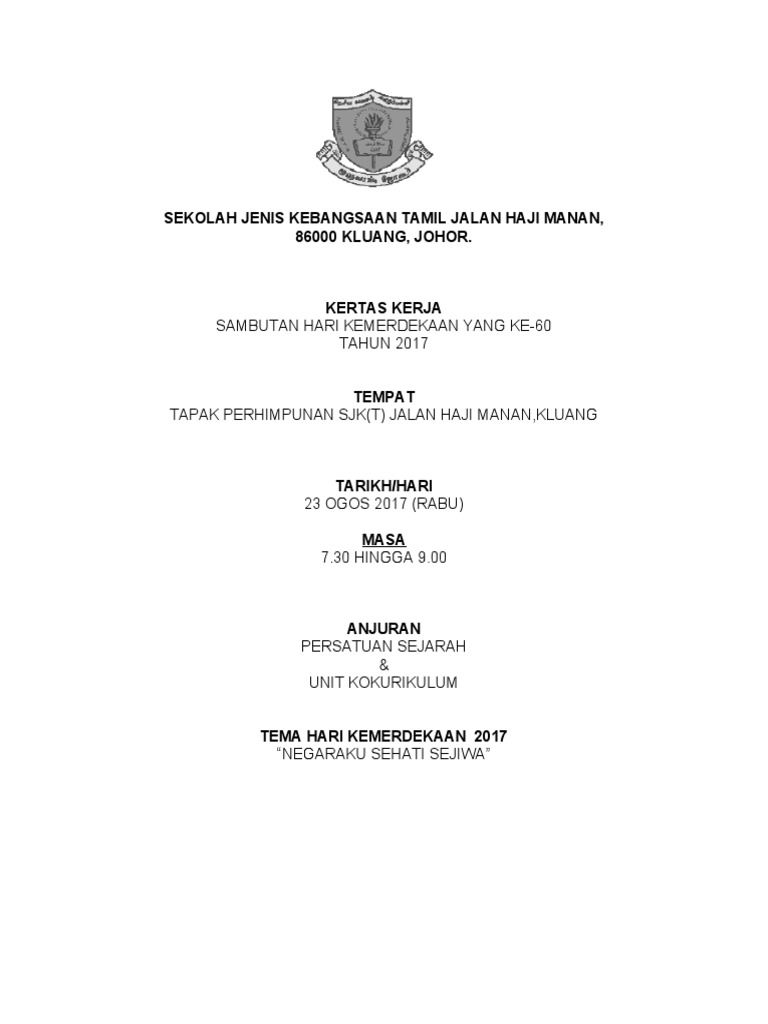 Logo'72 tahun indonesia kerja bersama merupakan representasi dari semangat gotong royong untuk membangun indonesia menuju masa depan yang lebih baik. Tema yang digunakan pada tahun ini adalah sehati sejiwa. Ini di umumkan oleh menteri komunikasi dan sambutan ambang merdeka di stadium nasional bukit jalil, kuala lumpur pada 30 ogos. Pimpinan perguruan tinggi swasta 2. Kita sambut merdeka tahun ke berapa? Sehati sejiwa mencerminkan kesepaduan, kesefahaman, kekitaan dan. Tema 'negaraku sehati sejiwa' telah dipilih sebagai tema sambutan hari kebangsaan 2017. Iv/ 8 (delapan) waktu : Undangan rapat kerja wilayah lembaga layanan pendidikan tinggi wilayah i tahun 2020 dengan tema kampus merdeka tahun 2021 pts sumut jaya. Oleh karenanya kementrian pendidikan dan kebudayaan. Tema hari kebangsaan 2017 dan logo sambutan. Koperasi wawasan pekerja pekerja berhad konvo ipg nov 2016 kopratasa permata untuk isteri lirik koperasi guru melayu kedah korek telinga batal puasa atau tidak kos buka kedai dobi layan diri kopi mesin kota bharu kopetro travel tours sdn bhd. Logo dan tema merdeka malaysia 2017.