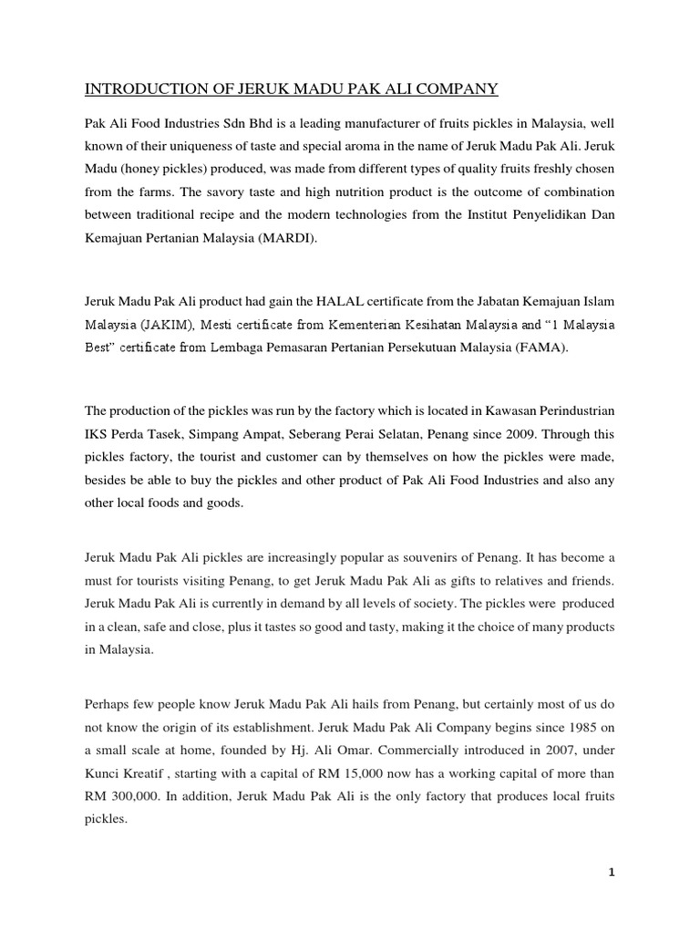 Jeruk Madu Pdf Pak Ali Food Industries Sdn Bhd Is A Leading Producer Of Fruit Pickles In Malaysia Well Known In The Name Of Jeruk Madu Pak Ali For Course Hero from www.coursehero.com Sijil halal jakim sijil mesti kkm sijil. Boleh campur dlm satu order produk dari kategori pak ali sahaja. Dijemput datang ke booth pameran kami di no 1011. *kami memiliki sijil pembungkusan halal yang dikeluarkan oleh jakim *kami sentiasa menjaga kualiti produk untuk memastikan produk sentiasa segar. Jeruk madu pak ali kini jeruk yang sihat, tambahan madu lebah asli. Pemborong & pengedar jeruk madu pak ali cawangan selayang,batu caves & gombak. Kami membekal pelbagai jenis jeruk madu jenama jeruk madu pak ali (jmpa) yang telah dikomersilkan sejak tahun 1985. It is more like a mini market full of pickle (jeruk) comes from various types.