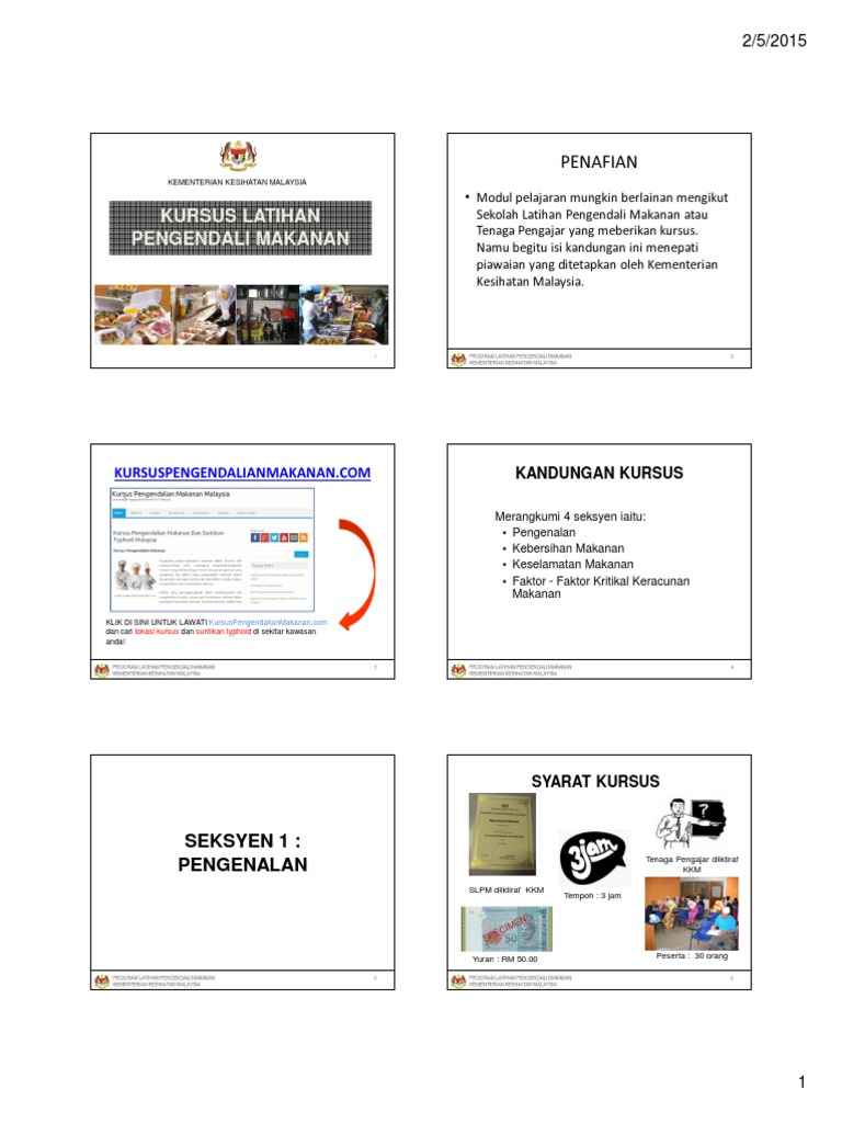 1 from Modul pengajaran sekolah latihan pengendali makanan bahagian keselamatan dan kualiti makanan 5 kementerian kesihatan malaysia panduan am pakej modul pengajaran latihan pengendali makanan (lpm) telah direka untuk memastikan keseragaman pengajaran dan pembelajaran oleh tenaga pengajar sekolah latihan pengendali makanan (slpm) di seluruh negara. More images for sekolah latihan pengendali makanan » Jun 23, 2021 · sekolah latihan pengendali makanan. Pelan lokasi pejabat dan tempat latihan 7. Salinan sijil pengiktirafan tenaga pengajar 6. Oleh yang demikian, kementerian kesihatan malaysia mengambil langkah untuk menswastakan latihan tersebut demi memperluaskan sekolah latihan pengendali makanan dan mempermudahkan para pengendali makanan untuk mendapatkan latihan tersebut. See full list on jknperak.moh.gov.my Gambar bilik latihan *modul dan program latihan pengendali makanan akan diberikan kepada slpm setelah mendapat akreditasi